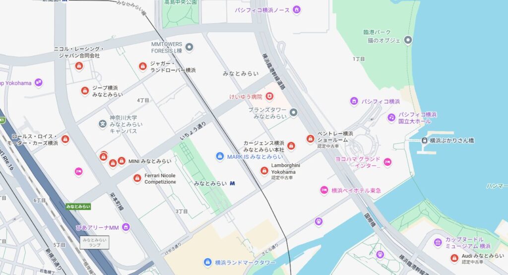 こうして調べてみると、みなとみらいが外車ディーラーの聖地になったこともうなずけます。