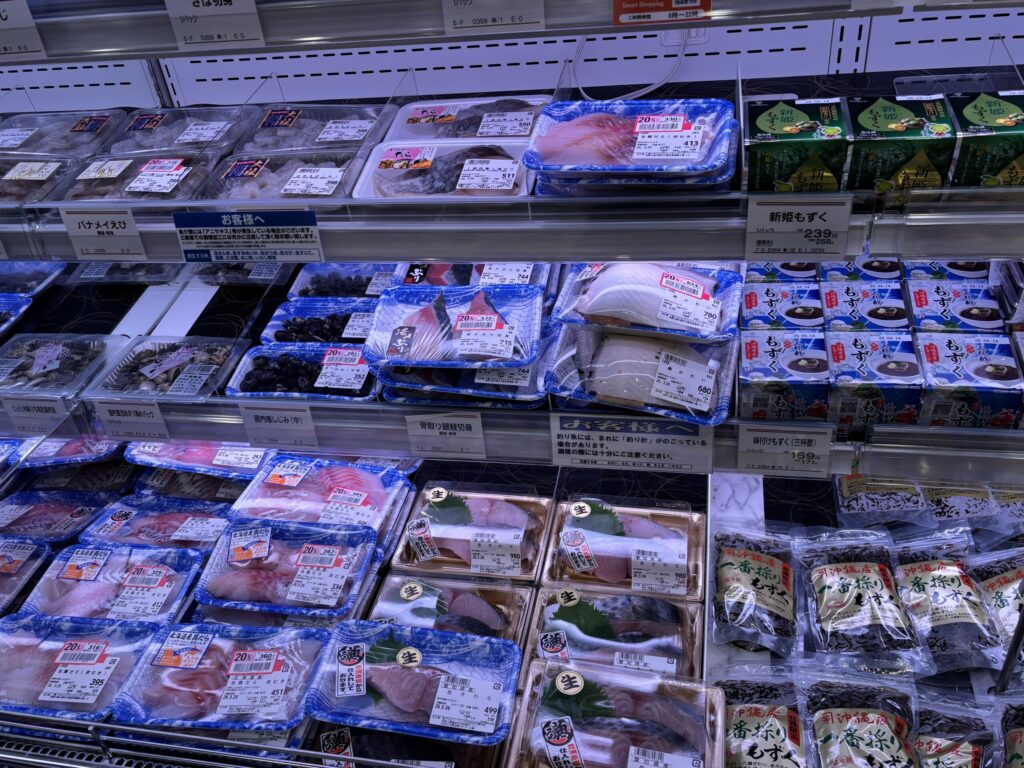 写真の通り、お惣菜だけではなく鮮魚、精肉、青果等も抜群の品数です。