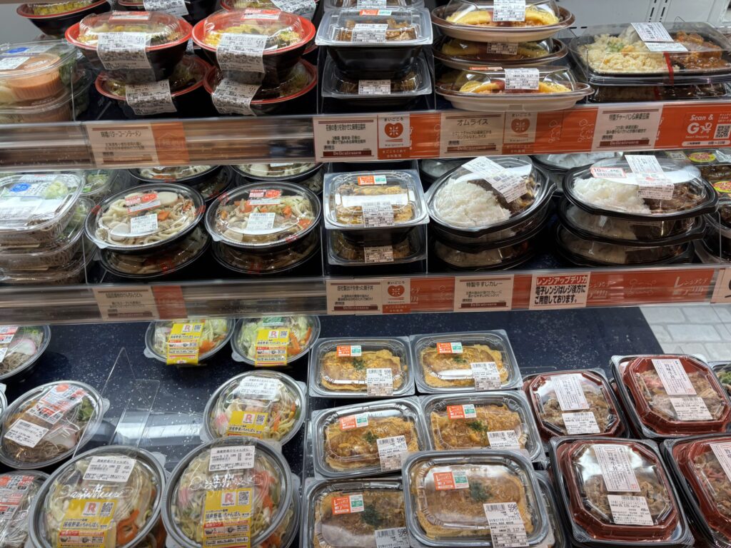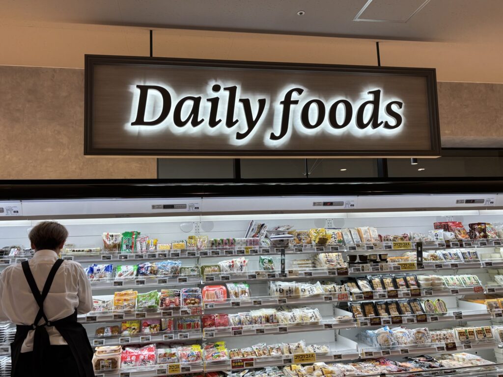 まず驚くのが、お惣菜コーナーの充実度です。一般的なスーパーとは一線を画す、彩り鮮やかなサラダやグリル料理がズラリと並んでいて見るだけでテンションが上がります。