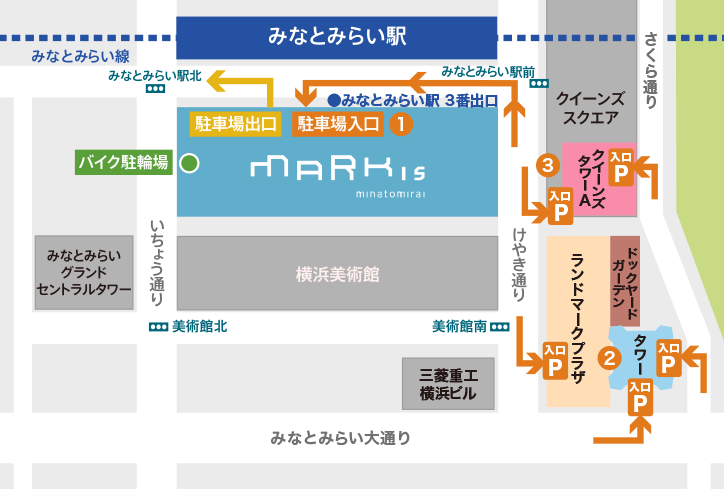 ③提携駐車場: 満車の場合は、共通割引が適用されるランドマーク地下駐車場(1,400台)の利用も検討しましょう。