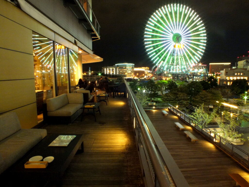 最大の魅力は、遮るもののない開放的なパノラマビュー。目の前の運河を挟んで、ランドマークタワーがそびえたちます。特に夕暮れから夜にかけてのライトアップは圧巻で、二人の会話をそっと後押ししてくれるはずです。