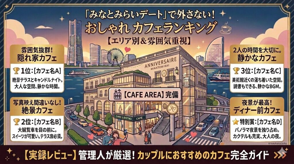 海風と夜景が彩るみなとみらい。この街でのデートを締めくくるのは、やはり「心に残るカフェでの時間」です。