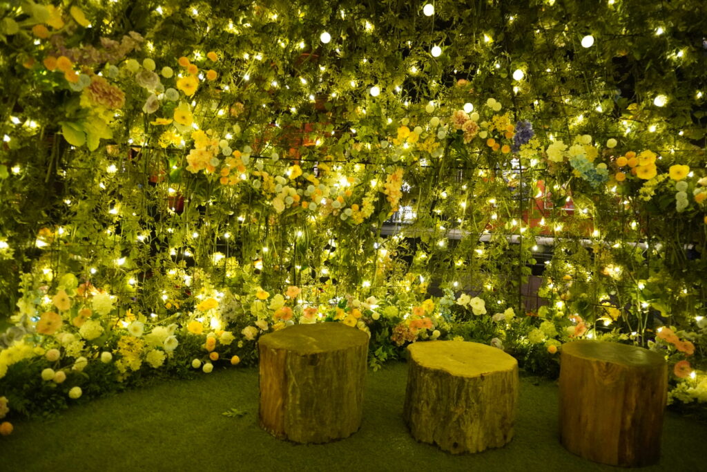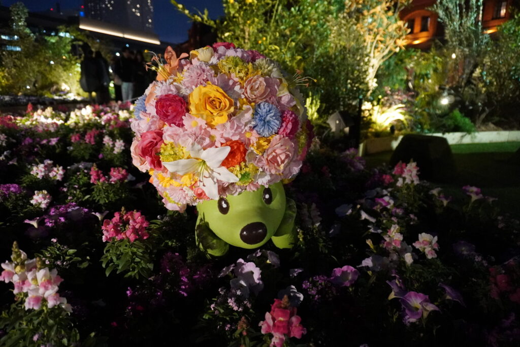日が落ちた後の「FLOWER GARDEN 2026」は、昼間の賑やかさとは打って変わって、静かでドラマチックな時間が流れています。