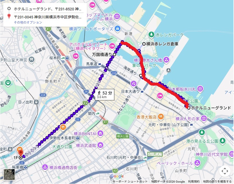 ■ルート: 山下公園中央口付近 ~ 万国橋交差点付近。