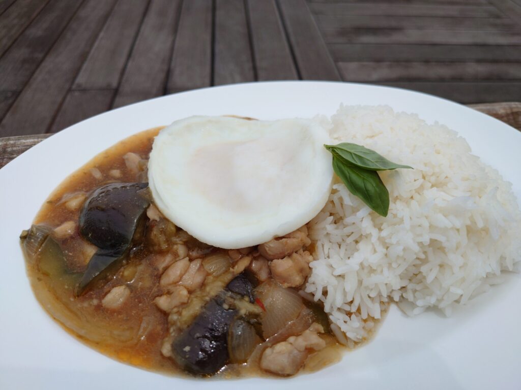 私が注文した「ガパオライスセット」は、粗めに惹かれた鶏肉のうま味に加え、唐辛子のピリッとした刺激が後から追いかけてきて、ただ辛いだけでなく、深みのある味わい。また、上に乗った目玉焼きにスプーンを入れると、黄身がトロンとあふれだしスパイシーな挽肉をまろやかに包み込んでくれます。パラリとしたお米とも相性抜群でした。